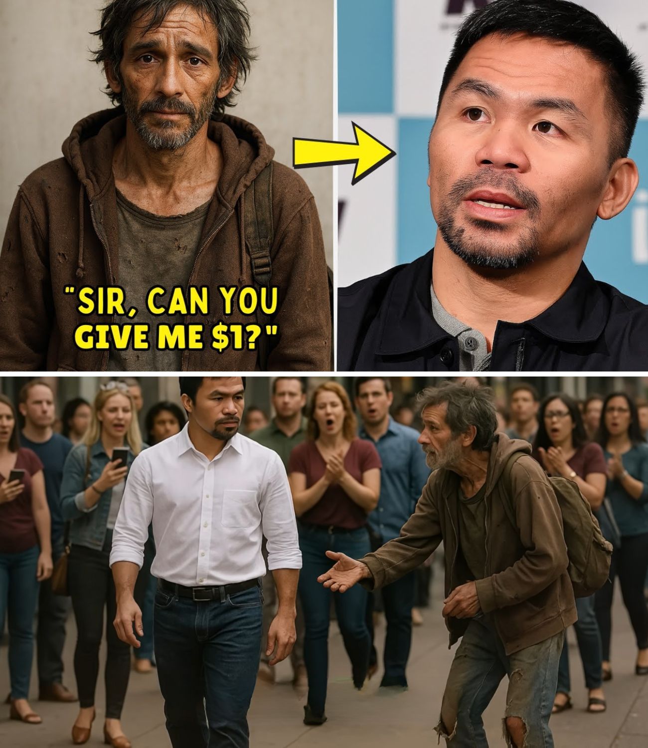 At pagkatapos ay may ginawa si Manny na hindi inaasahan ng sinuman. Yumuko siya, ibinababa ang sarili upang ang kanyang mga mata ay magtagpo sa mga mata ng lalaking walang tirahan. Sa nag-iisang kilos na iyon, binura niya ang distansya sa pagitan ng isang alamat ng boksing at isang nakalimutang kaluluwa.