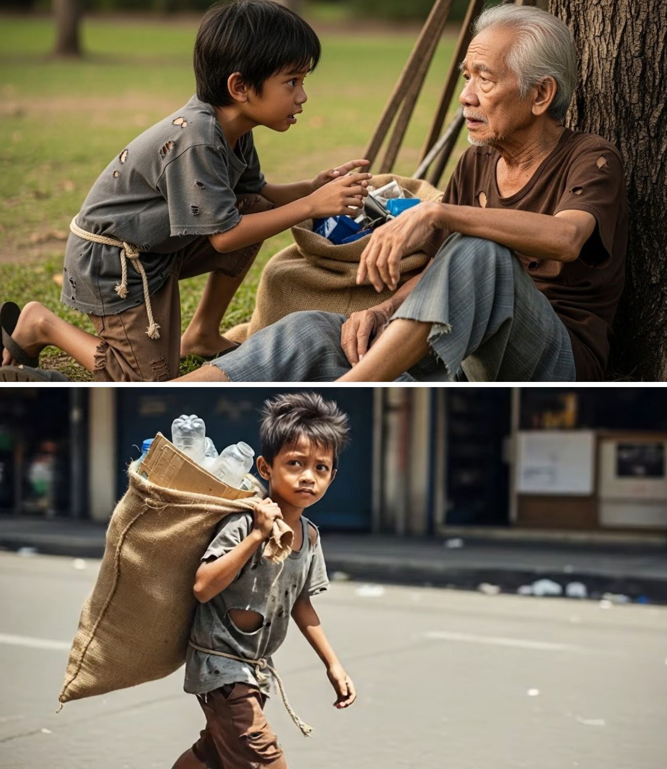 Isang kilo ng karton, Php 3. Pero kahit kaunti, sapat na ito para sa isang simpleng pananghalian—isang pandesal o kaya ay isang tasang kanin. Ngayong araw, kinita niya ay Php 20. Php 20 lang, pero para kay Erwin, malaki na ‘yon. Sapat na ito para sa dalawang pandesal at isang mineral water. Pero habang naglalakad siya pauwi sa tabi ng parke, nakita niya ang isang matandang lalaki na nakaupo sa tabi ng puno.