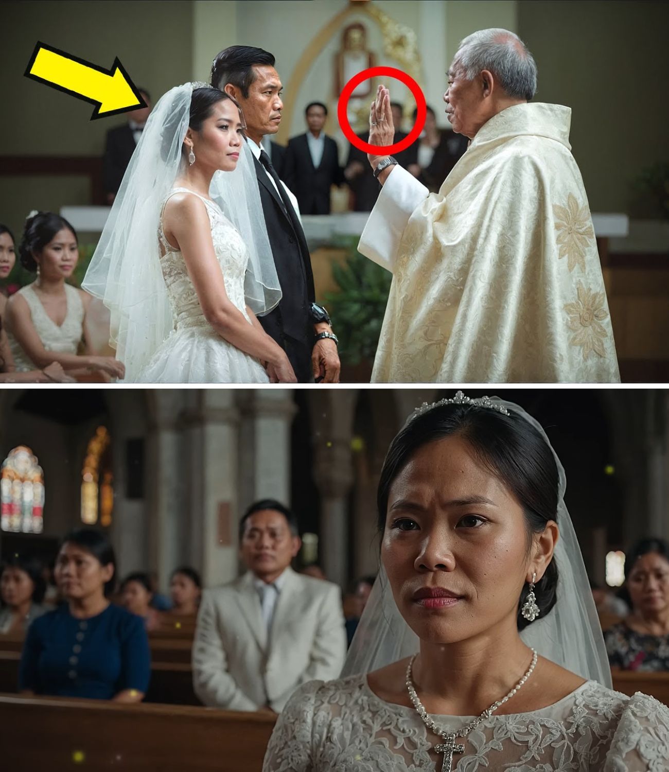 Hindi tumugon si Alejandro. Tumalikod siya nang walang imik, dinaanan si Father Joseph pabalik sa loob ng simbahan kung saan naghihintay pa rin ang kanyang mga panauhin, hindi makapaniwala sa mga pangyayari.
