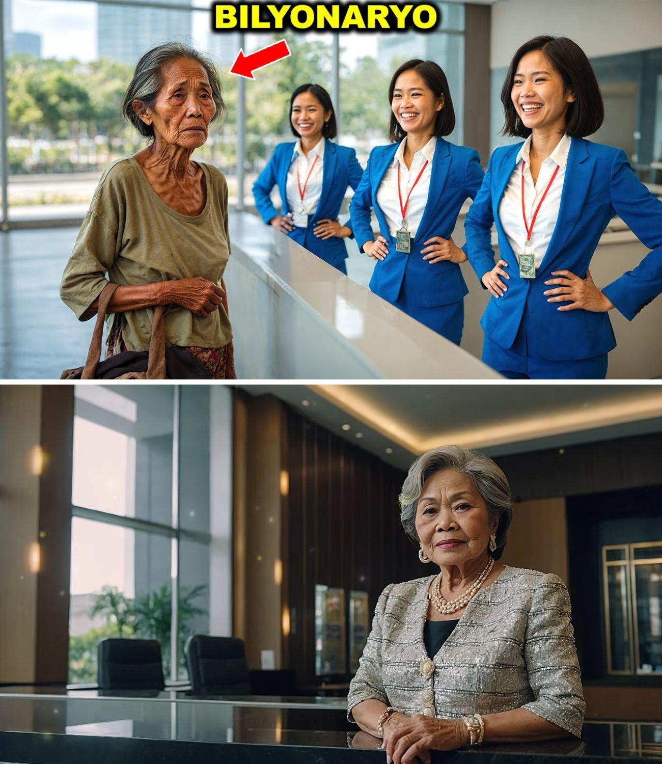 Martes ng umaga, 9:15. Isang itim na limousine ang huminto sa harap ng First National Bank. Bumukas ang pinto. Si Teresa Gonzalez ang bumaba—ngayon hindi bilang palaboy kundi bilang isang mayamang negosyante. Suot ang navy blue na designer suit, maayos ang kanyang buhok at bitbit ang isang Italian leather briefcase. Sa likod niya si Rodrigo, dala ang dalawang rolling cases at isang tablet.