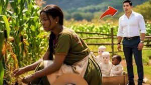 Tatlong batang gumagapang sa pagitan ng hanay ng mais habang nagtatrabaho siya — mas malakas pa ang kanilang tawa kaysa sa tsismis ng mga kapitbahay.