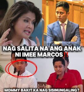 Sa isang bansa kung saan ang politika ay parang teleseryeng walang katapusan, bihira ang pangyayaring ang mismong anak ang humarap sa publiko upang kontrahin ang sariling ina—lalo na kung ang ina ay isang kilalang personalidad, politiko, at bahagi ng pinakamakapangyarihang pamilya sa Pilipinas. Ngunit ngayong linggo, isang nakakabinging pagsabog ang umalingawngaw sa social media: ang anak umano ni Imee Marcos ay tumayo at nagsalita, at ang kanilang mga pahayag ay tila naglalayong tibagin ang imahe ng kanilang sariling ina.
