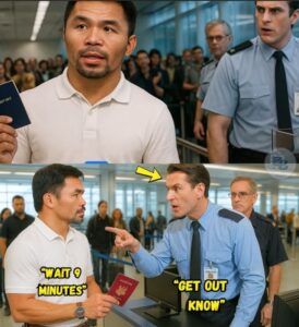 Nakatayo siya nang may tahimik na dangal ng isang taong ipinahiya, ngunit piniling bumangon, hindi para sa paghihiganti, kundi para sa katarungan. Sa wakas, humakbang siya pabalik nang bahagya, binibigyan ng huling tingin ang nanginginig na opisyal. “Hindi ko itataas ang aking kamay laban sa inyo. Hindi ko kayo iinsultuhin pabalik, ngunit sisiguraduhin ko na hindi na ito mauulit kailanman. Hindi sa akin, at hindi sa sinumang manlalakbay.” Ang hall ay muling tumahimik. Ang mga salita ni Manny ay nanatiling mabigat, hindi maikakaila, hindi makakalimutan. Sa sandaling iyon, ang balanse ng kapangyarihan ay tuluyan nang nagbago. Ang opisyal ay wala na sa kontrol. Si Manny Pacquiao, sa pamamagitan lamang ng mahinahong mga salita at hindi matitinag na dangal, ay nakuha ang buong silid. At sa lalong madaling panahon ang buong mundo sa kanyang panig.
