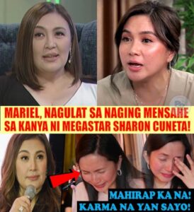 Sa mundo ng showbiz na punô ng liwanag, palakpakan, at ngiting pang-entablado, may mga sandaling ang tahimik na mensahe ang mas nagdudulot ng pinakamalakas na ingay. Ganito ang naging eksena nang kumalat sa social media ang balitang nagulat si Mariel Rodriguez sa umano’y mga mensaheng natanggap niya mula kay Megastar Sharon Cuneta—mga salitang ayon sa mga netizen ay nagbukas ng pinto sa mas malalim na usapan tungkol sa emosyon, reputasyon, at ang laging binibigkas na pariralang “karma is real.”